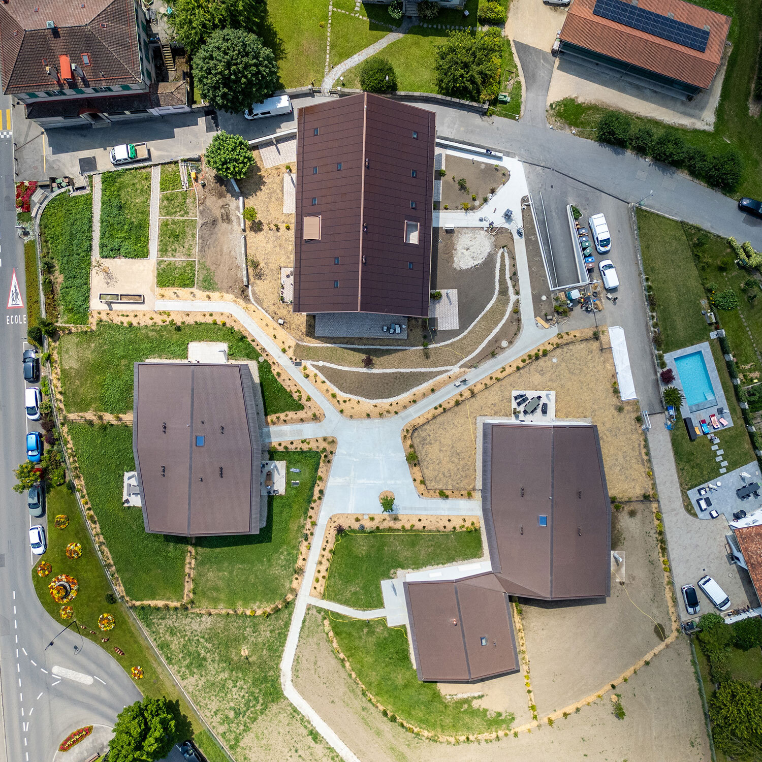 Pizzera Poletti SA, a conçu et réalisé un bâtiment qui sera un pôle administratif majeur du service de La Poste de l’époque, les PTT. Il abrite aujourd’hui la société Swisscom et fait partie du quartier d’habitation des Bergières développé également par PPSA.